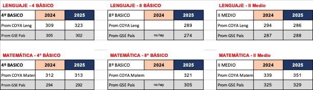 Informamos a toda la comunidad los excelentes resultados que rindieron nuestros alumnos de 4°, 8º básico y II medio el año 2025.
